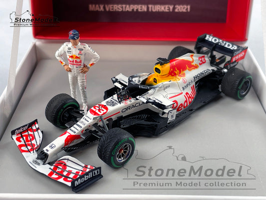 2021 F1 World Champion #33 Max Verstappen Red Bull RB16B Turkish GP Special Livery 1:43 Spark Figure Gift Box
