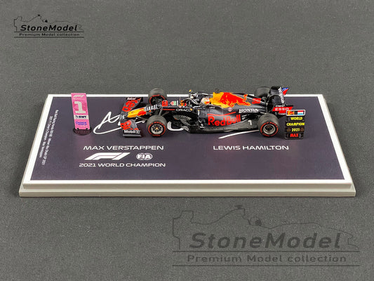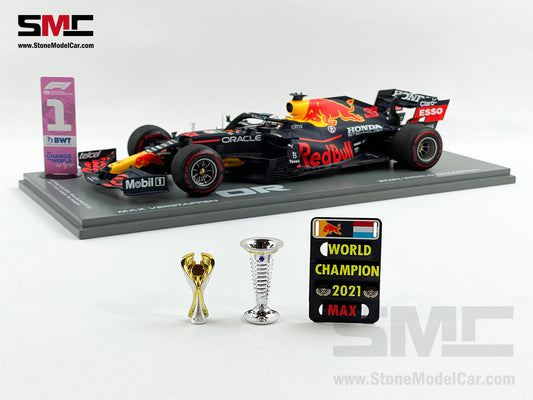 2021 F1 World Champion #33 Max Verstappen Red Bull RB16B Abu Dhabi GP 1:18 Spark with Trophies