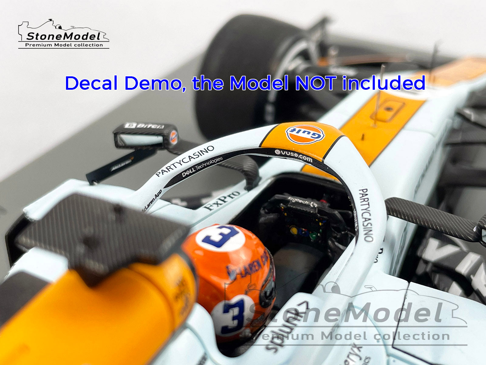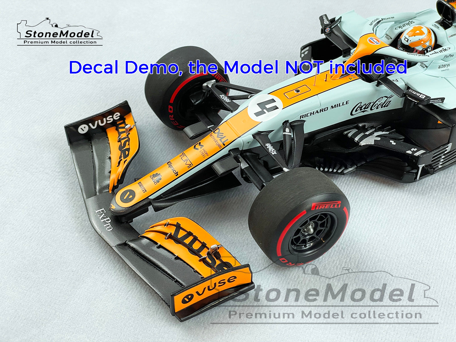 Gulf Livery 1:18 VUSE Decal for Mclaren F1 MCL35M #4 Lando Norris & #3 Daniel Ricciardo Monaco GP 2021 Gulf Special Livery 1:18 MINICHAMPS/ Spark.