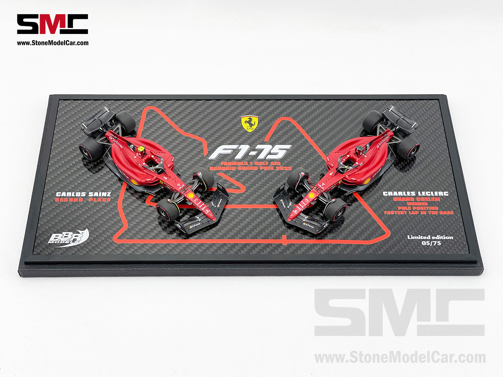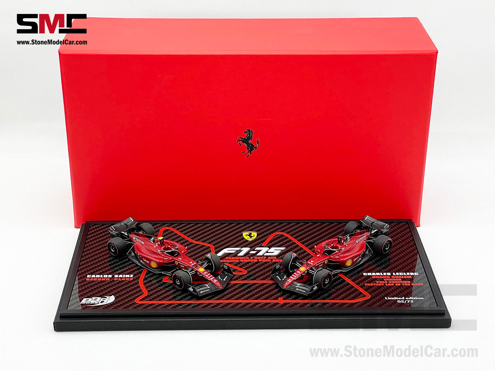 Ferrari F1-75 #16 Charles Leclerc & #55 Carlos Sainz Bahrain GP 1-2 Set F1 2022 1:43 BBR