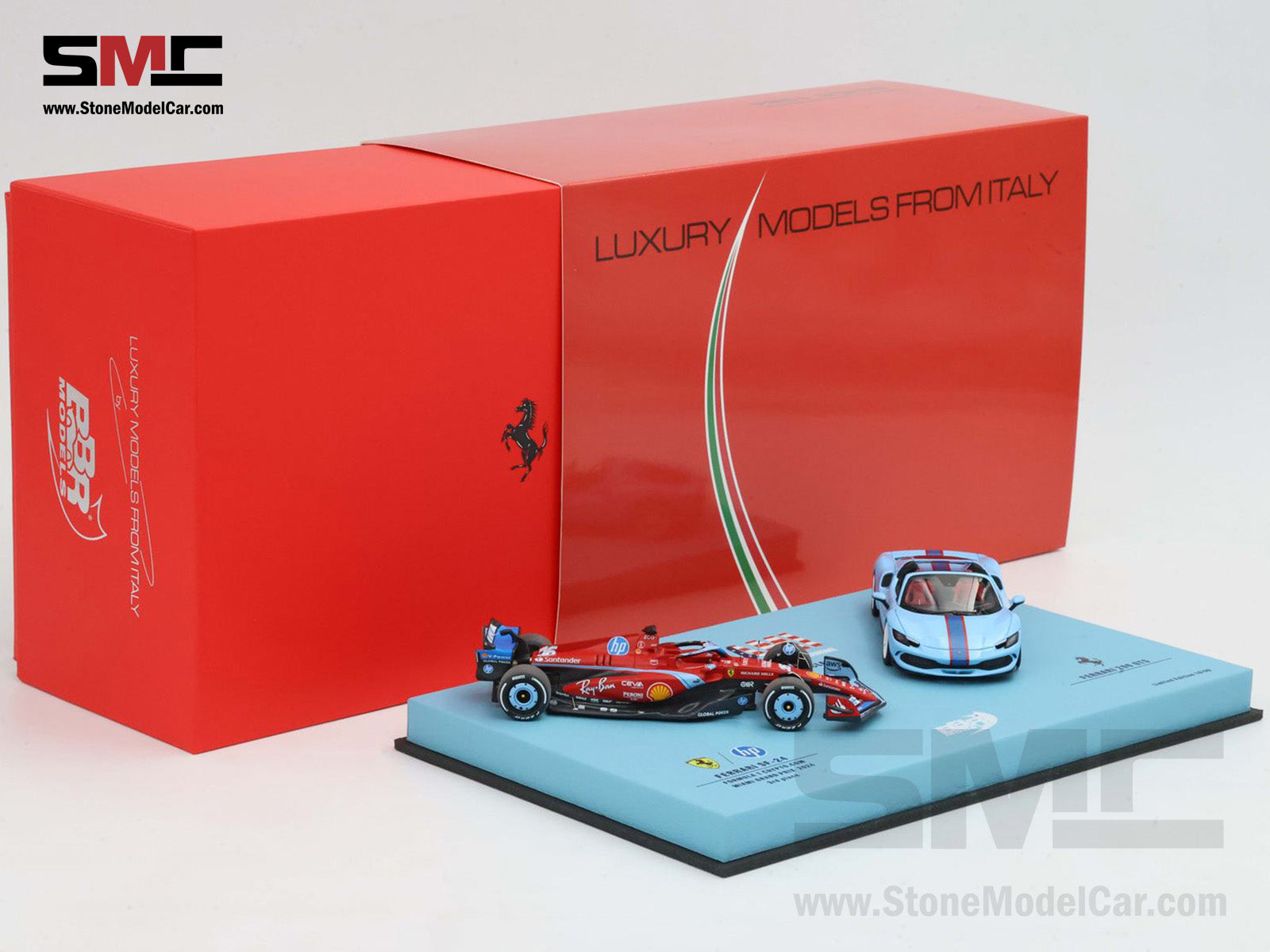 Ferrari F1 SF-24 & 296 GTS #16 Charles Leclerc USA Miami GP 2024 2x Car Set BBR 1:43 BBRC268ASET