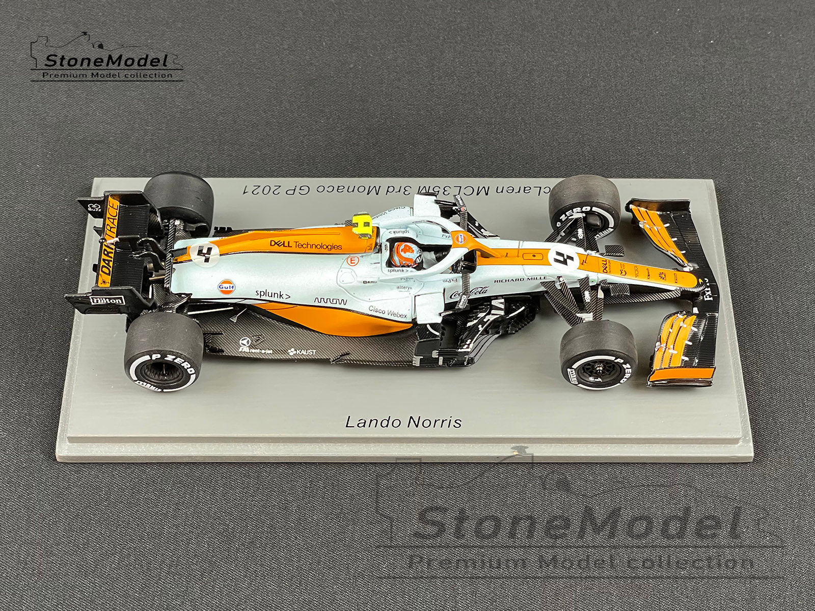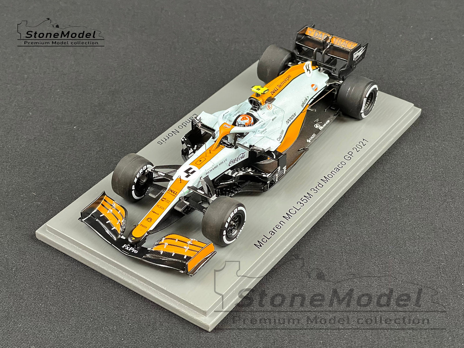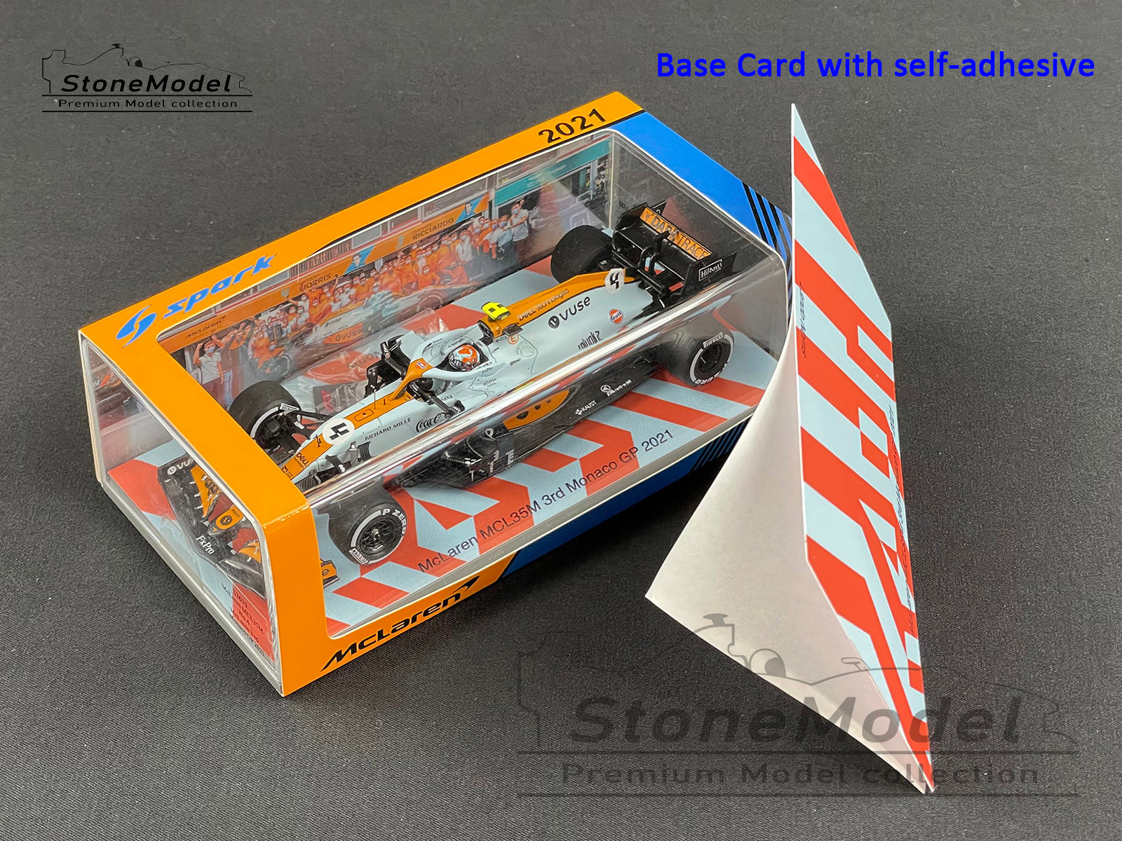 Mclaren F1 MCL35M 4 Lando Norris Monaco 2021 Spark 1:43 + Decal & Background Card