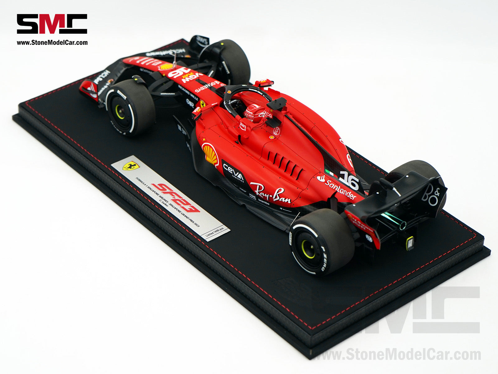 Ferrari F1 SF-23 #16 Charles Leclerc Singapore GP 2023 BBR 1:18 with Leather Base