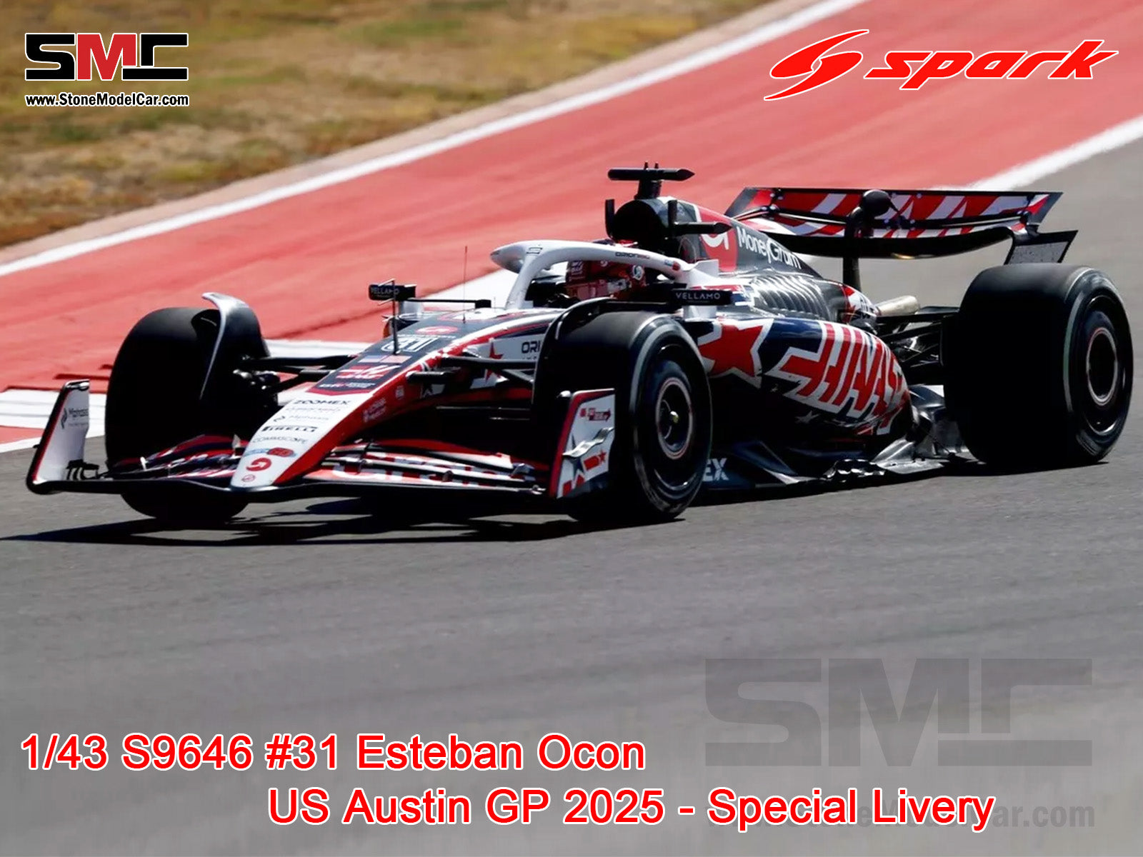 ![[Pre-Order] Haas F1 Team VF-25 #31 Esteban Ocon US Austin GP 2025 Special Livery 1:43 Spark S9646](http://www.stonemodelcar.com/cdn/shop/files/S9646.jpg?v=1762020776&width=1445)