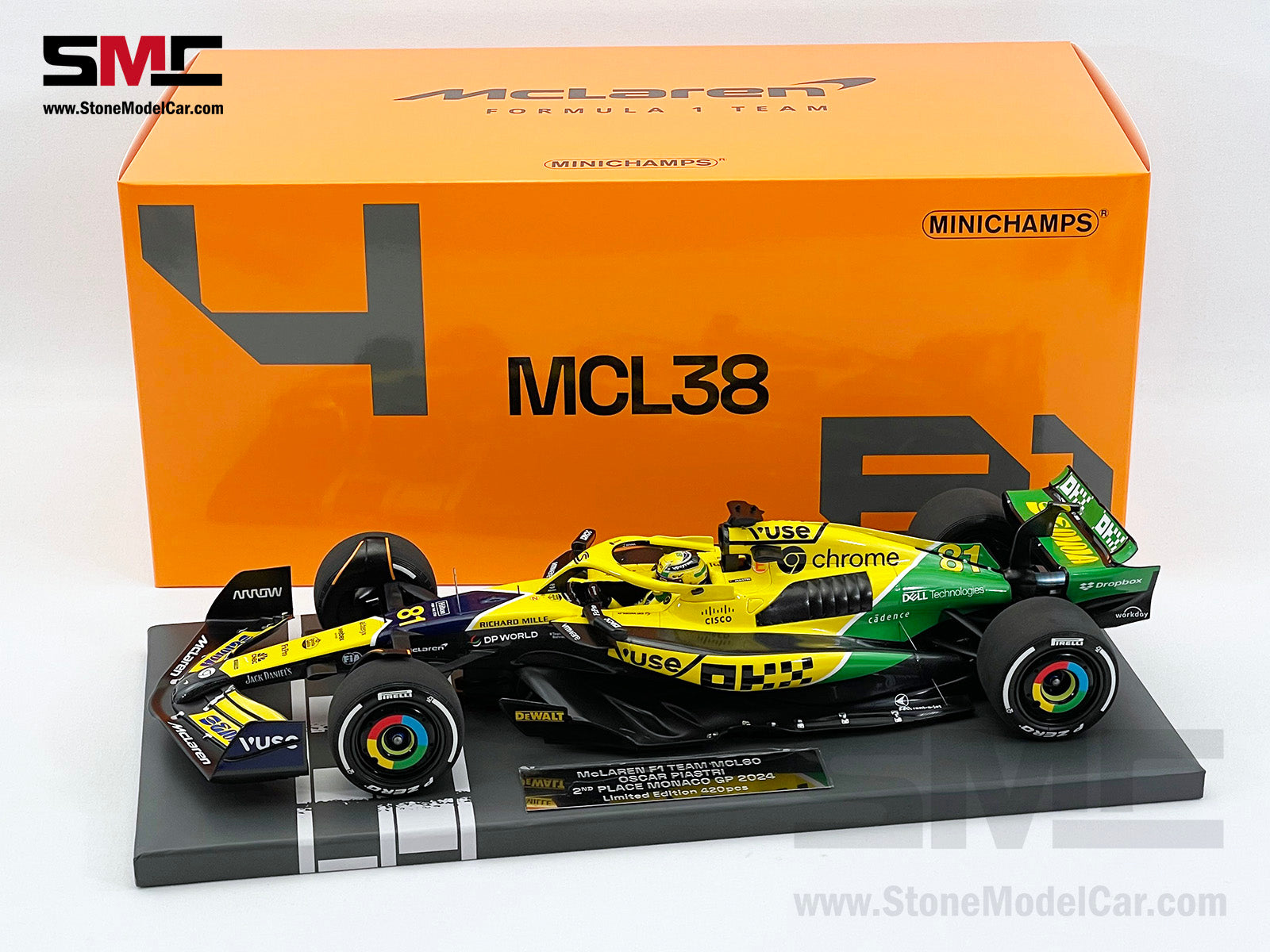 McLaren F1 MCL38 #81 Oscar Piastri 2nd Monaco GP 2024 Special Livery 1:18 MINICHAMPS